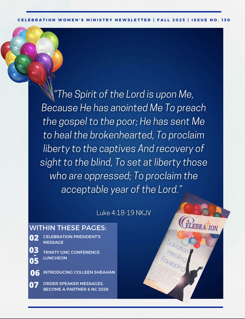 The Celebration Newsletter goes out quarterly via mail and email. It is full of encouraging words, updates about the ministry, and information about upcoming events!